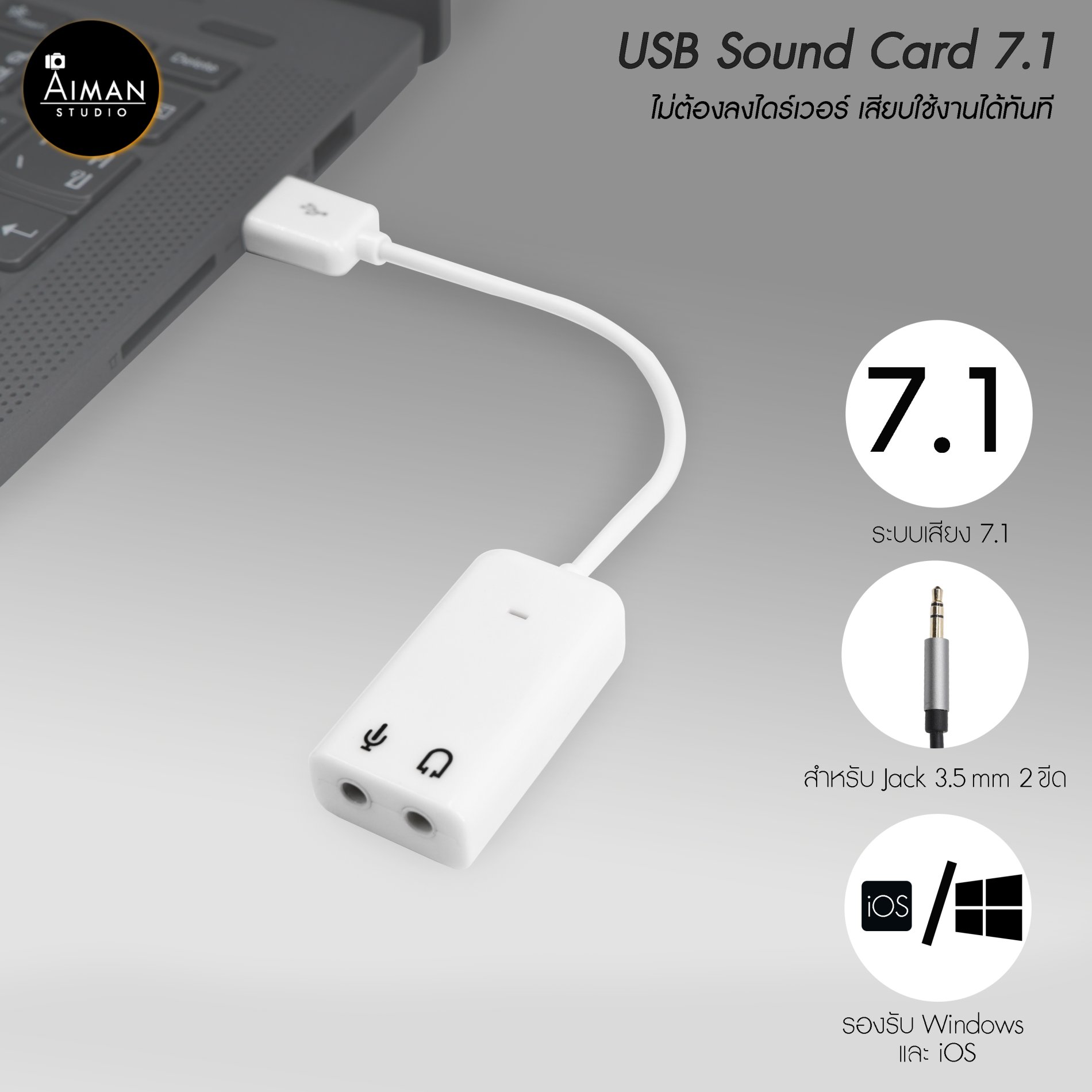 Plug & Play USB 2.0 External Sound Adapter with 3.5mm Audio Jack for Headphones & Mic